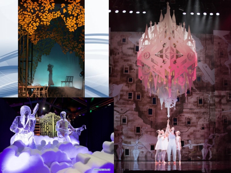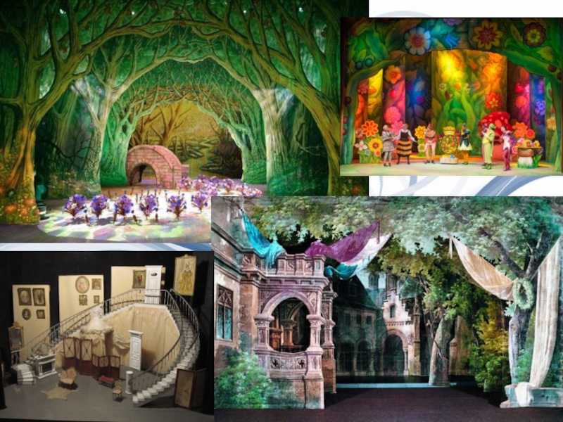 Во время спектаклей, опер зритель наблюдает мощные декорации. Чаще всего между частями или актами происходит замена украшения сцены, чтобы передать новые эмоции и наделить зрителя благоприятной атмосферой.