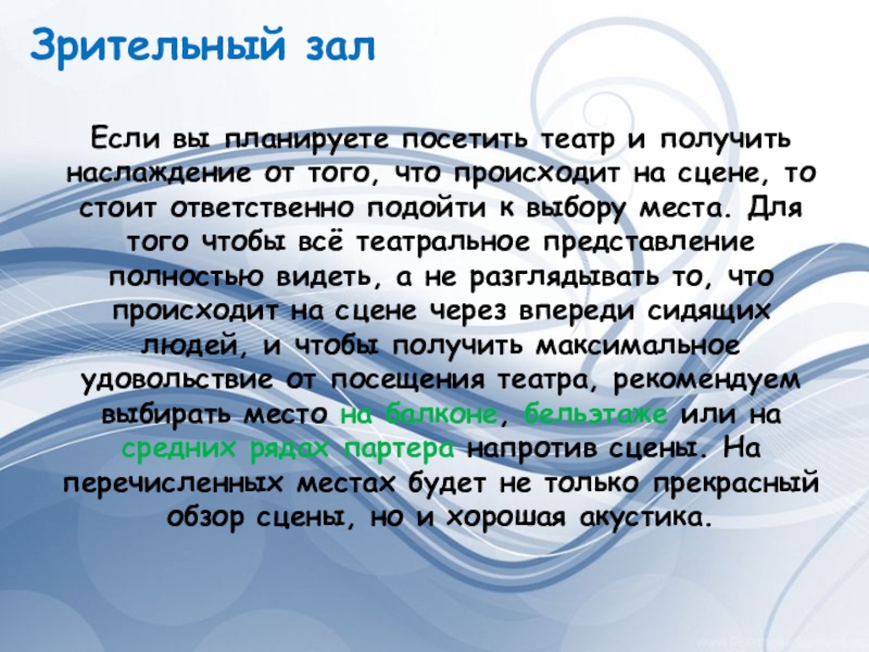 Однако, собираясь в театр, следует помнить, что это искусство ориентировано не на одного зрителя, а на целый зал.
