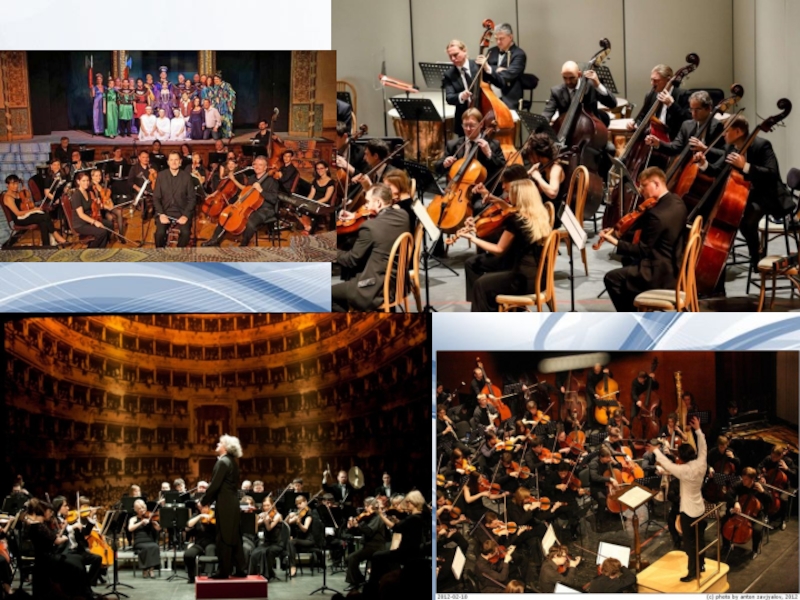 Симфонический оркестр - это оркестр, составленный из струнных, духовых и ударных инструментов.