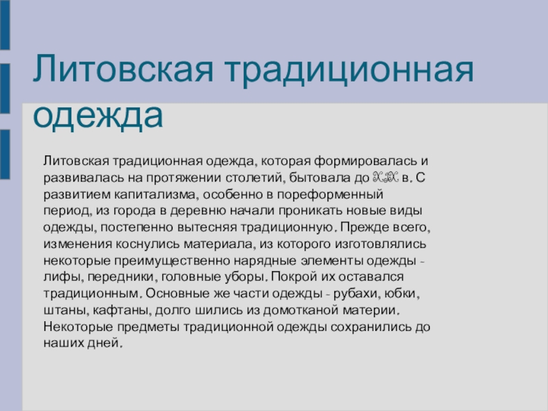 Литовская традиционная одежда, которая формировалась и развивалась на протяжении
