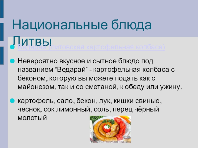 названием "Ведарай" - картофельная колбаса с беконом, которую вы можете подать как с майонезом, так и со сметаной, к обеду или ужину.