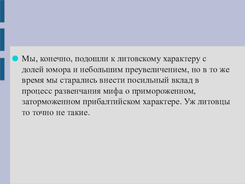 Мы, конечно, подошли к литовскому характеру с долей юмора и небольшим