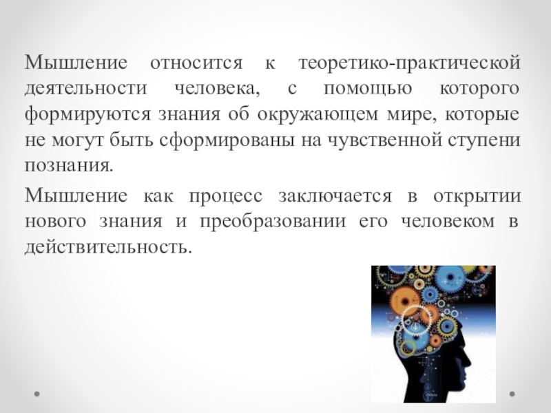 Мышление относится к теоретико-практической деятельности человека, с помощью которого формируются знания