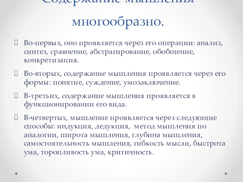 Во-первых, оно проявляется через его операции: анализ, синтез, сравнение,