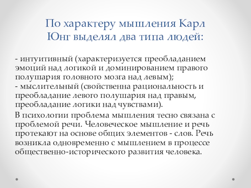 Слайд 20По характеру мышления Карл Юнг выделял два типа людей:
