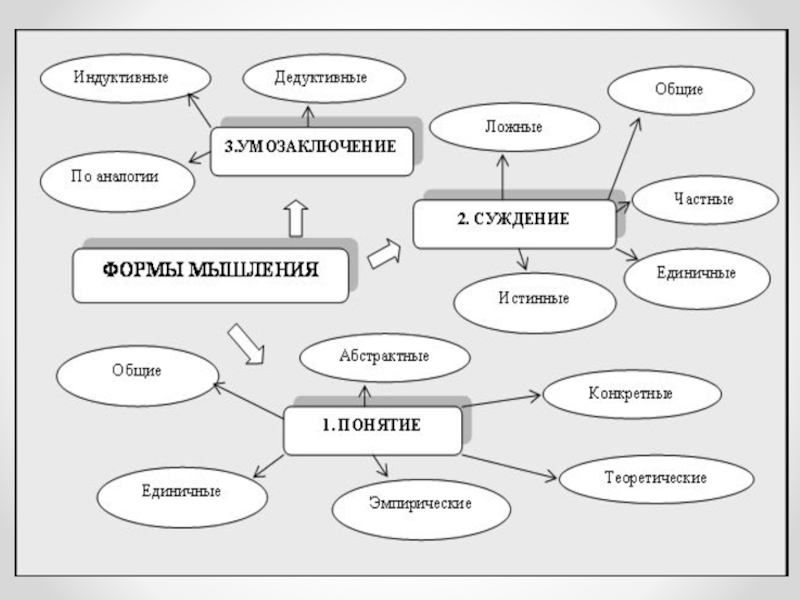 Во-вторых, содержание мышления проявляется через его формы: понятие, суждение, умозаключение.