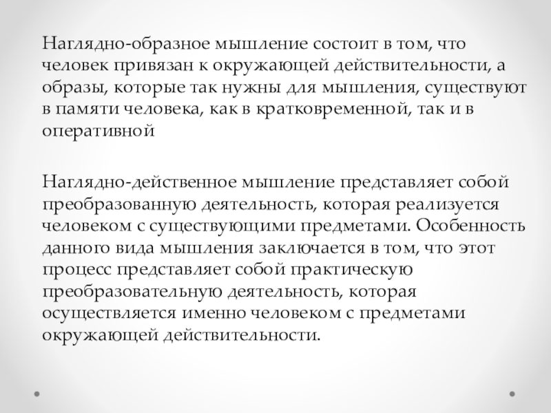 Слайд 19Наглядно-образное мышление состоит в том, что человек привязан к окружающей действительности,