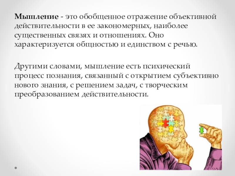 Слайд 2Мышление - это обобщенное отражение объективной действительности в ее закономерных, наиболее существенных