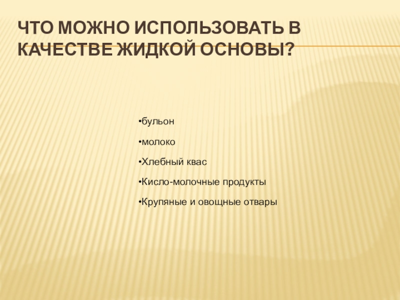 Слайд 12Что можно использовать в качестве жидкой основы?