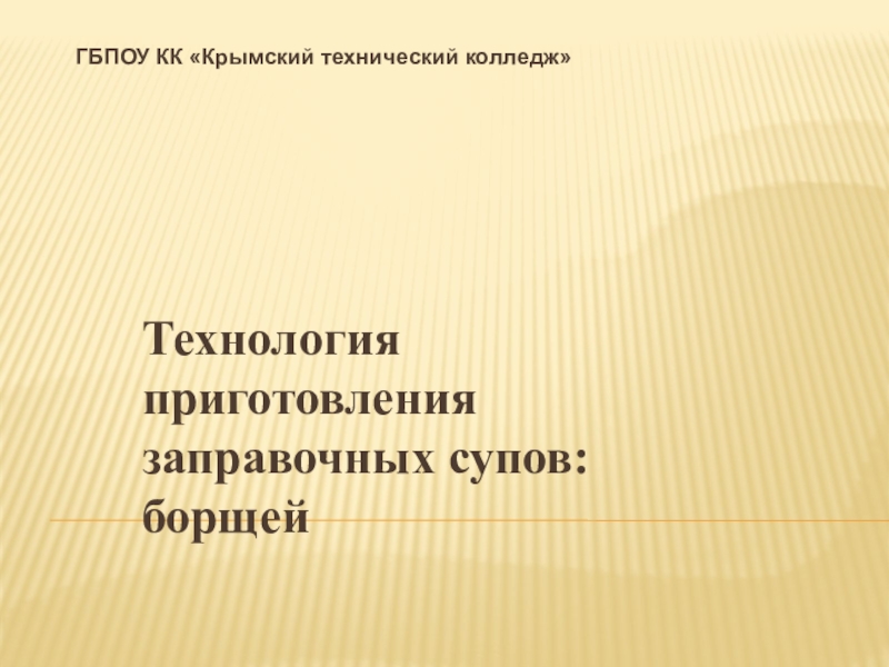 Технология приготовления заправочных супов: борщейГБПОУ КК «Крымский технический колледж»