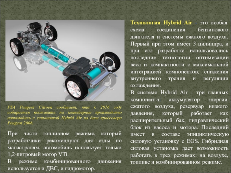 PSA Peugeot Citroen сообщает, что к 2016 году собирается поставить на конвейерное производство автомобиль с установкой Hybrid Air на базе кроссовера Peugeot 2008.