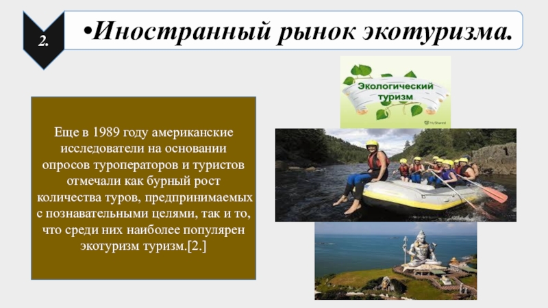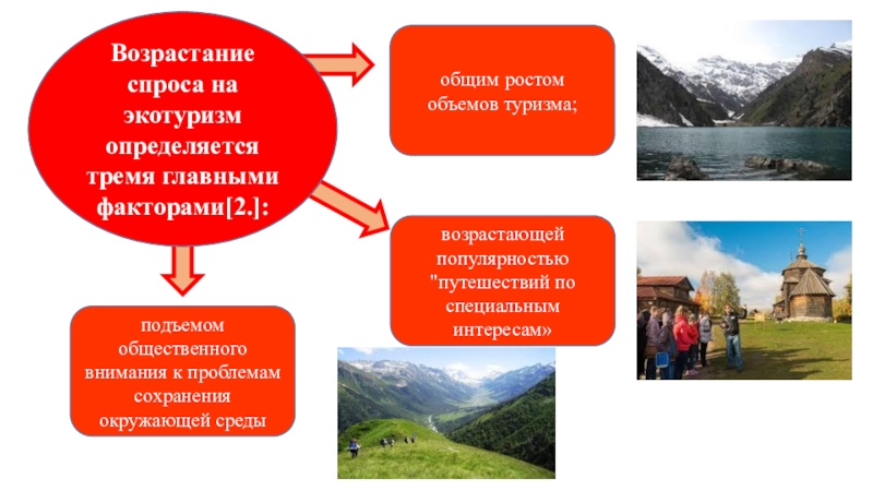 Слайд 7Возрастание спроса на экотуризм определяется тремя главными факторами[2.]: