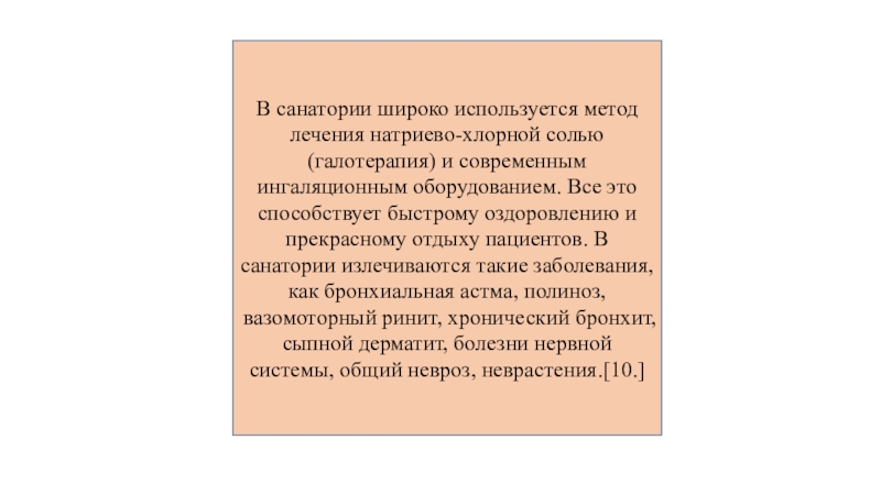 Слайд 29В санатории широко используется метод лечения натриево-хлорной солью (галотерапия) и современным