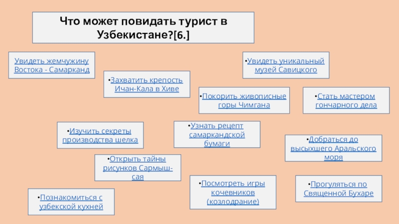 Слайд 21Что может повидать турист в Узбекистане?[6.]