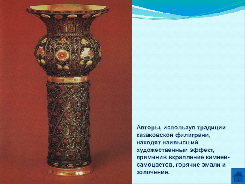 Слайд 30Авторы, используя традиции казаковской филиграни, находят наивысший художественный эффект, применив вкрапление