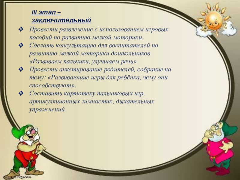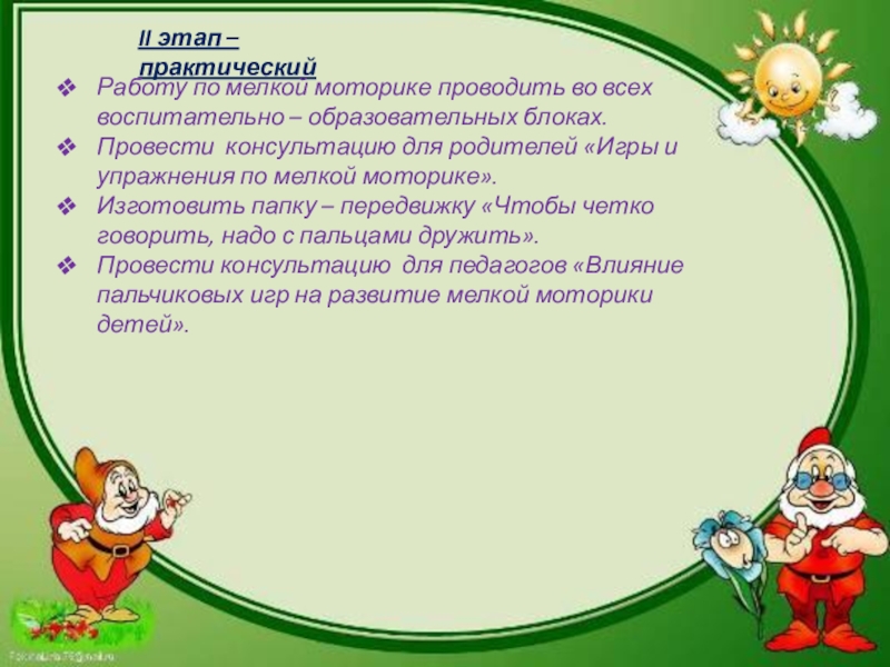Разработать перспективный план по работе над развитием мелкой моторики;