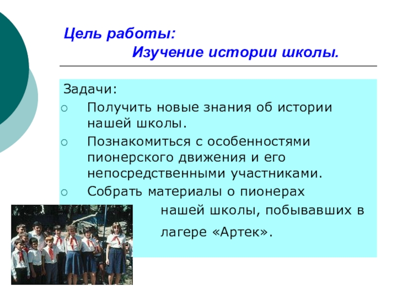 Познакомиться с особенностями пионерского движения и его непосредственными участниками.