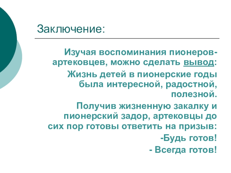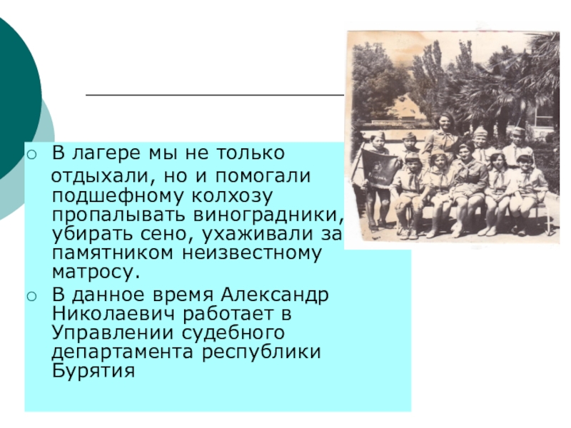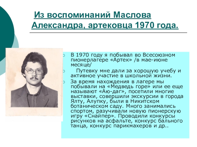 Слайд 17 Из воспоминаний Маслова Александра, артековца 1970 года.