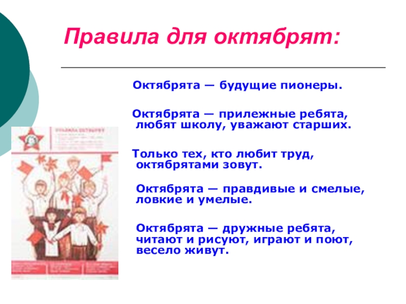 Слайд 12Правила для октябрят: