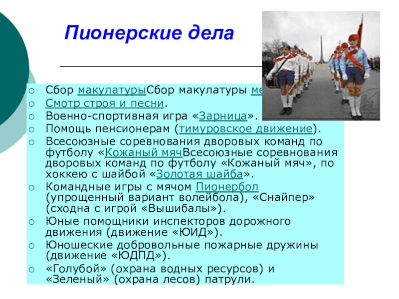 Слайд 9Пионерские дела