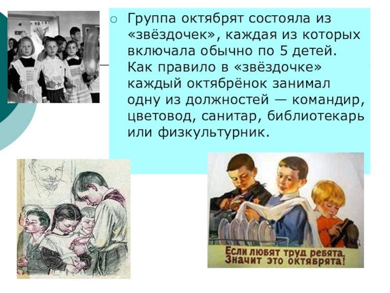 Только тех, кто любит труд, октябрятами зовут.