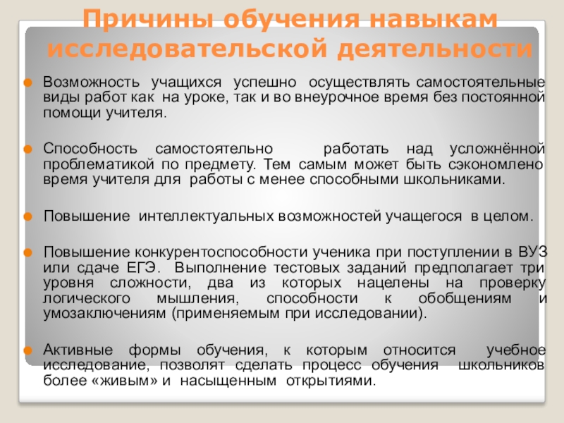 Слайд 5Причины обучения навыкам исследовательской деятельности