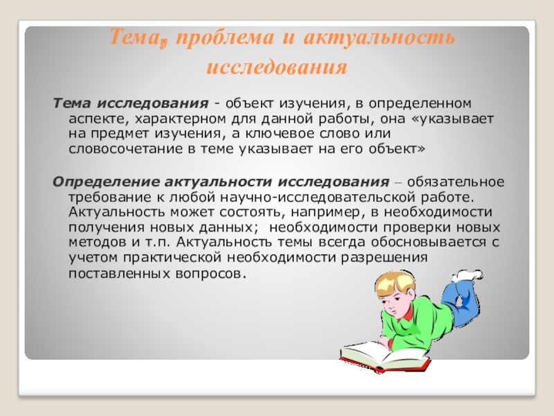 работы. Здесь обосновывается - актуальность выбранной темы, - описывается научная проблема, - формулируются задачи исследования и - указываются его основные методы