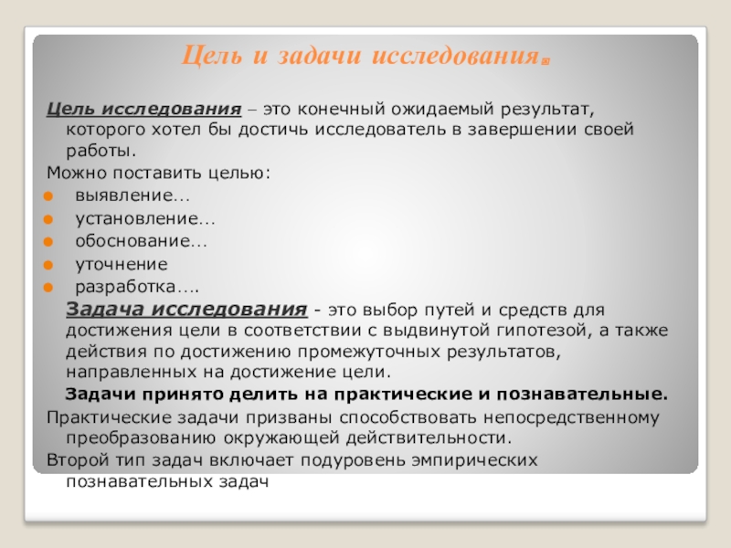 Под исследовательской задачей будем понимать объект мыслительной деятельности, в котором в