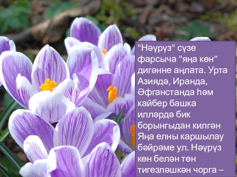 "Нәүрүз” сүзе фарсыча "яңа көн” дигәнне аңлата. Урта Азиядә, Иранда, Әфганстанда һәм кайбер башка илләрдә бик борынгыдан килгән Яңа елны каршылау бәйрәме ул. Нәүрүз көн белән төн тигезләшкән чорга – 21-22 мартка туры килә .