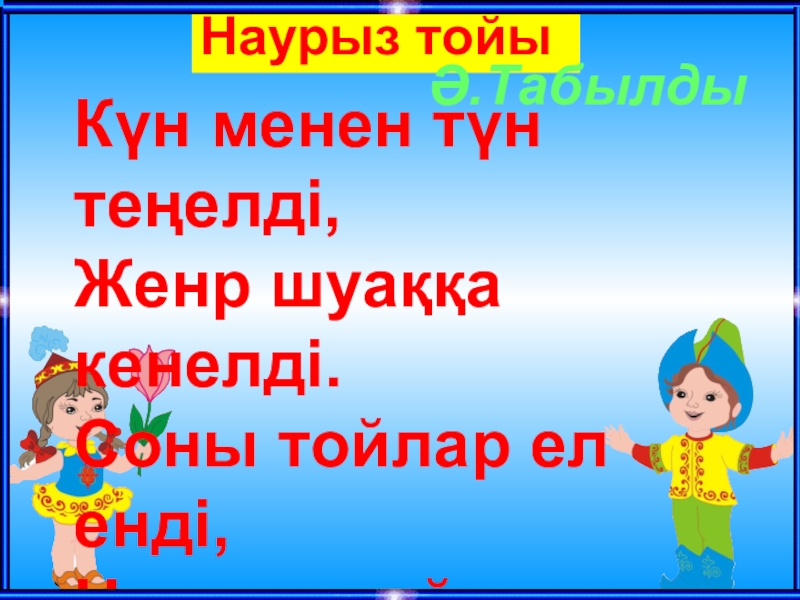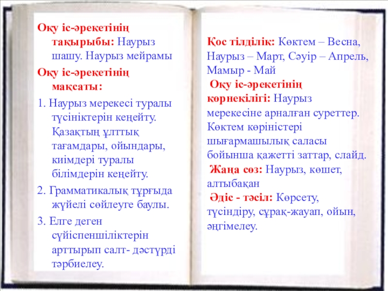 Қос тілділік: Көктем – Весна, Наурыз – Март, Сәуір – Апрель, Мамыр - Май