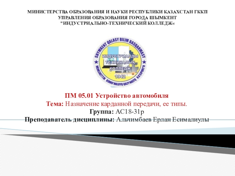 Преподаватель дисциплины: Альчимбаев Ерлан Есималиулы