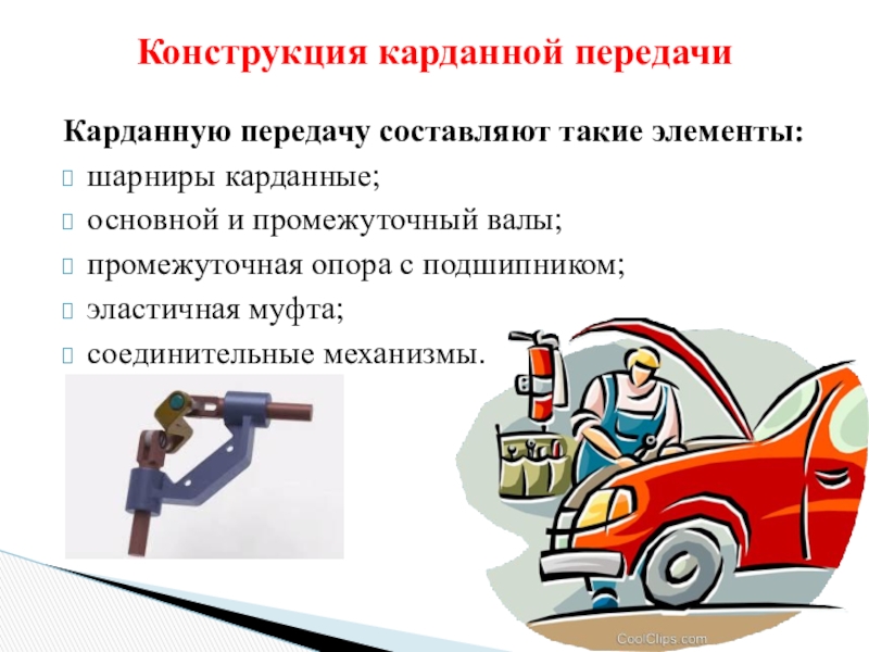 1 — муфта эластичная; 2 — фланец промежуточного вала коробки передач; 3 — грязевой отражатель; 4 — промежуточный вал коробки передач; 5 — гайка; 6 — уплотнитель центрирующего кольца; 7 — кольцо центрирующее; 8 — вкладыши муфты эластичной; 9 — болт; 10 — пробка; 11 — фланец переднего карданного вала; 12 — манжета; 13 — шлицевой конец переднего карданного вала.