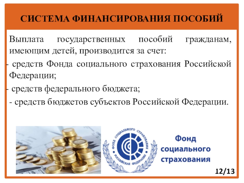 СИСТЕМА ФИНАНСИРОВАНИЯ ПОСОБИЙ