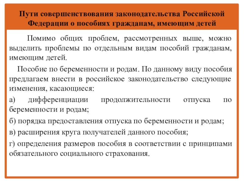 Пути совершенствования законодательства Российской Федерации о пособиях гражданам, имеющим детей