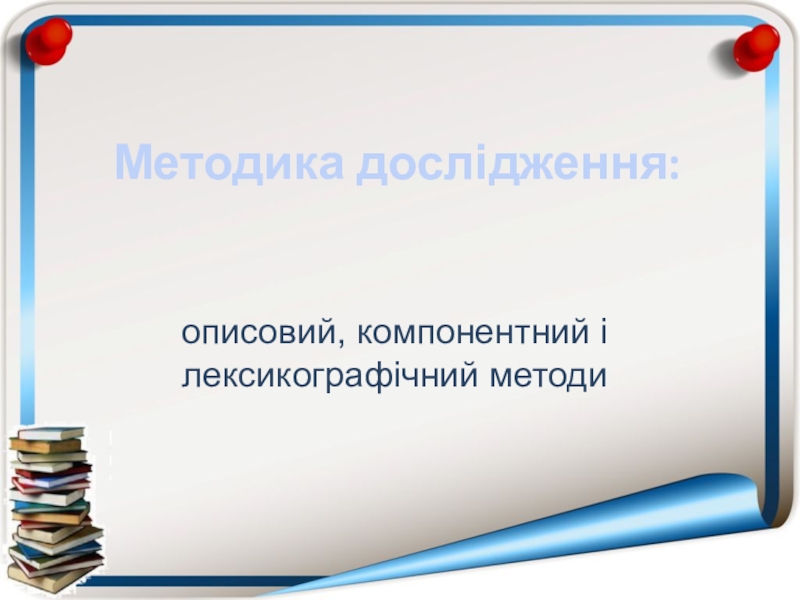 Методика дослідження:описовий, компонентний і лексикографічний методи
