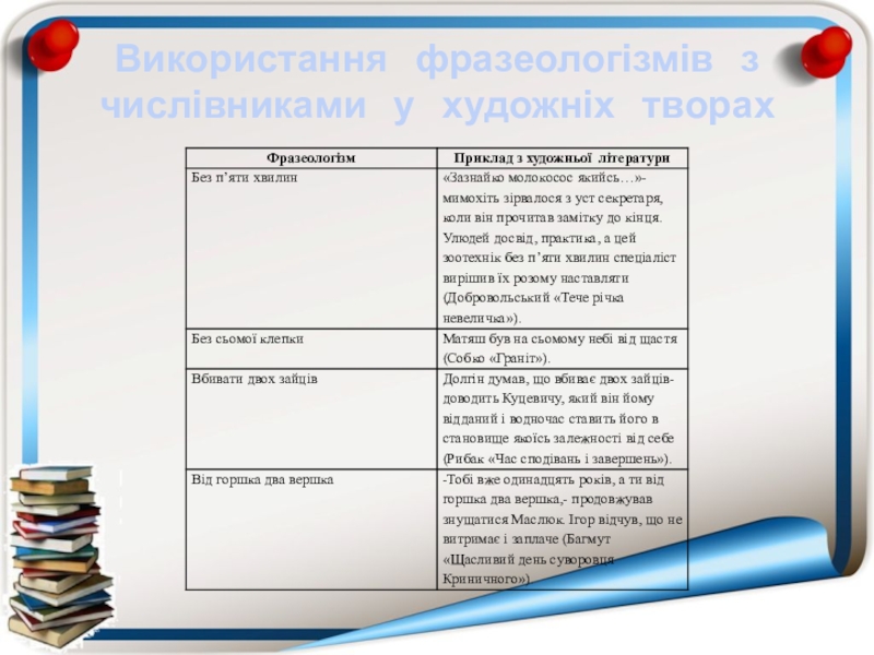 Використання  фразеологізмів  з числівниками  у  художніх  творах