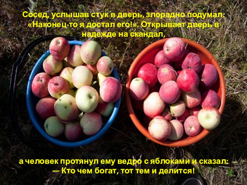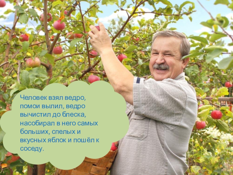 самых больших, спелых и вкусных яблок и пошёл к соседу.
