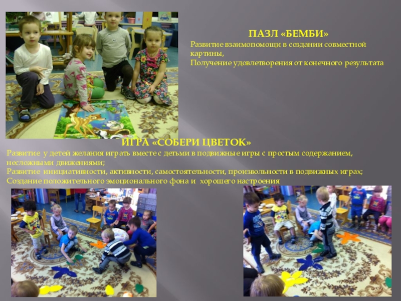 Развитие у детей желания играть вместе с детьми в подвижные игры с простым содержанием, несложными движениями;