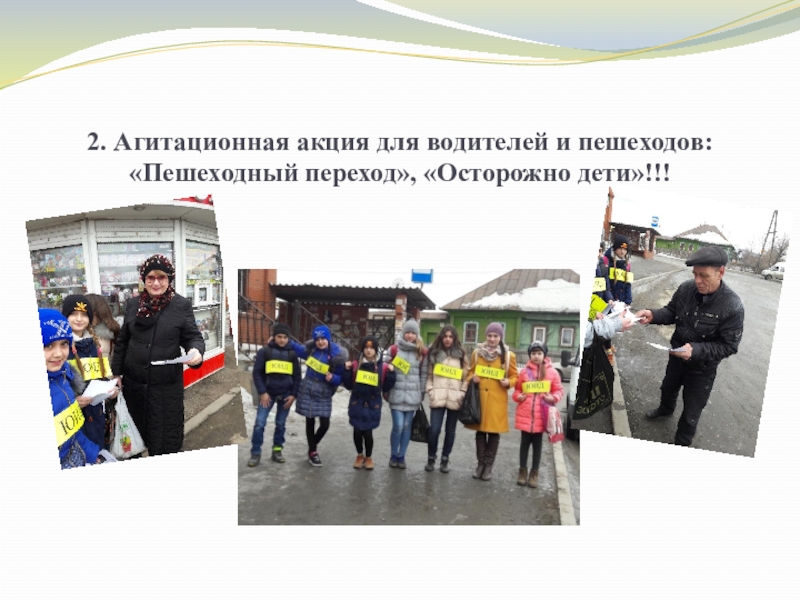 2. Агитационная акция для водителей и пешеходов: «Пешеходный переход», «Осторожно дети»!!!