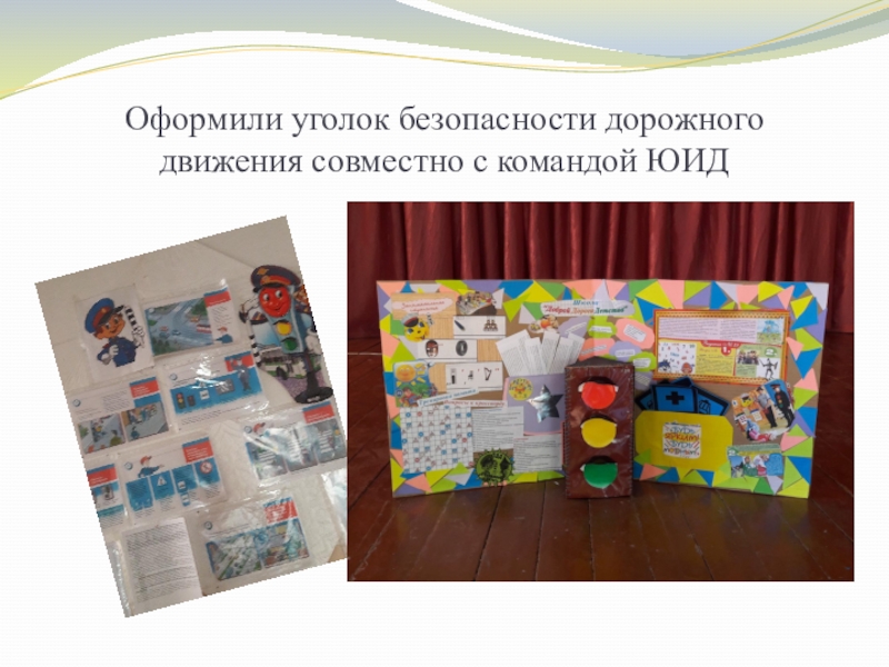 Слайд 12Оформили уголок безопасности дорожного движения совместно с командой ЮИД