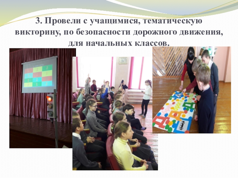 3. Провели с учащимися, тематическую викторину, по безопасности дорожного движения, для начальных классов.