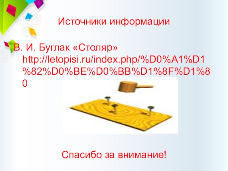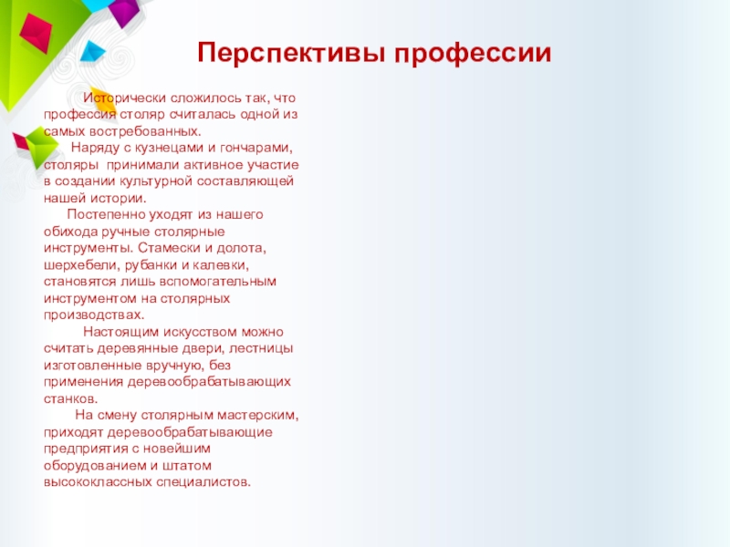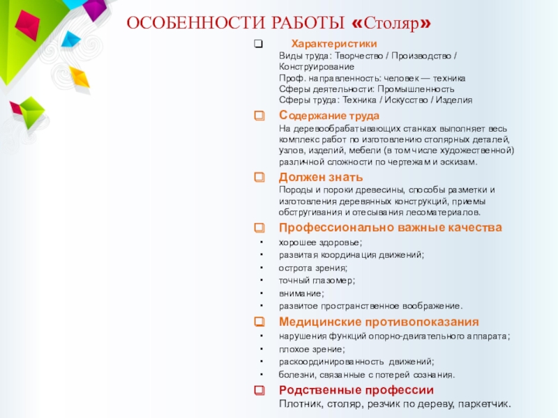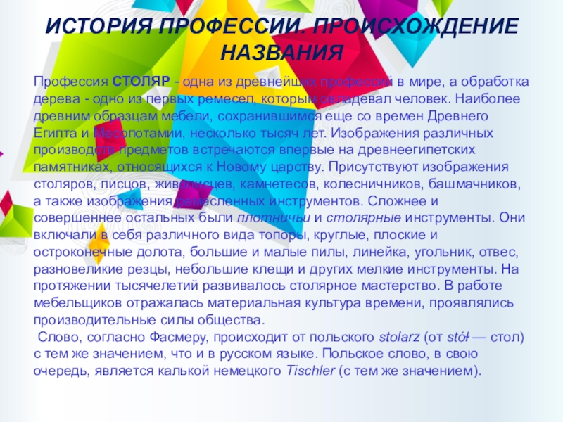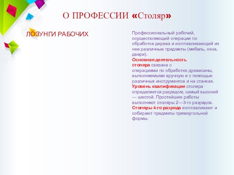 Слайд 6О ПРОФЕССИИ «Столяр»