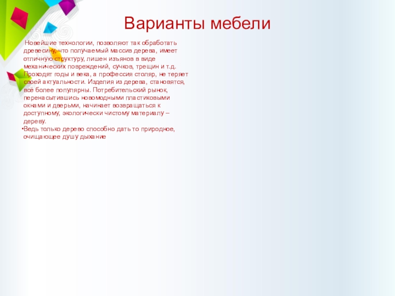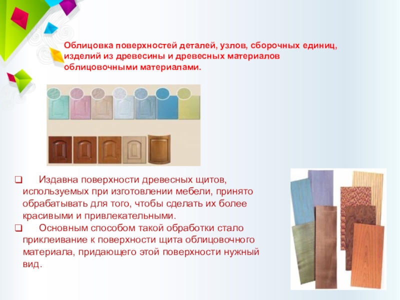 Слайд 10 Издавна поверхности древесных щитов, используемых при изготовлении мебели,