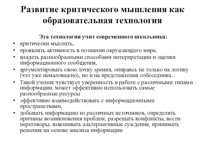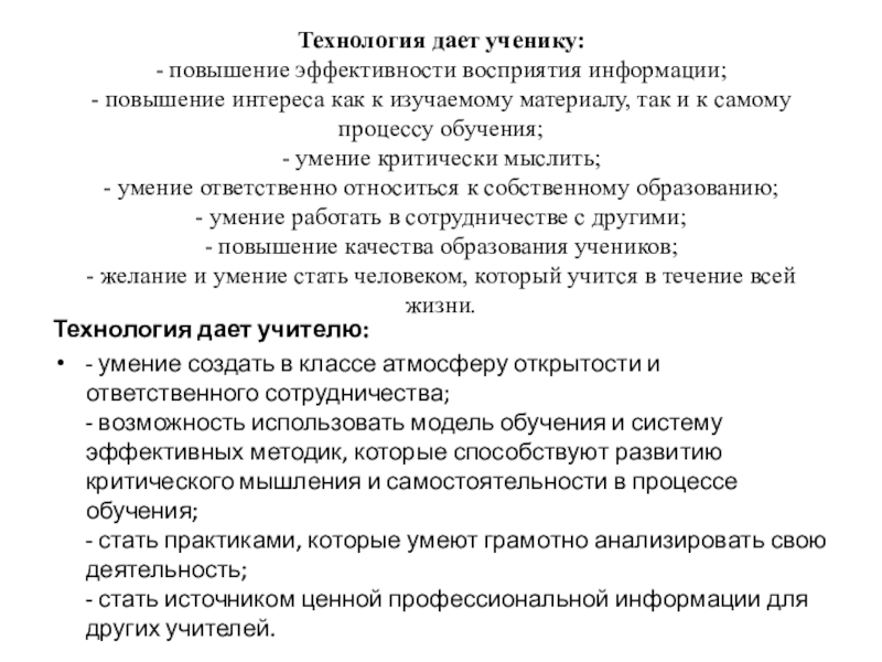 - возможность использовать модель обучения и систему эффективных методик, которые способствуют развитию критического мышления и самостоятельности в процессе обучения;