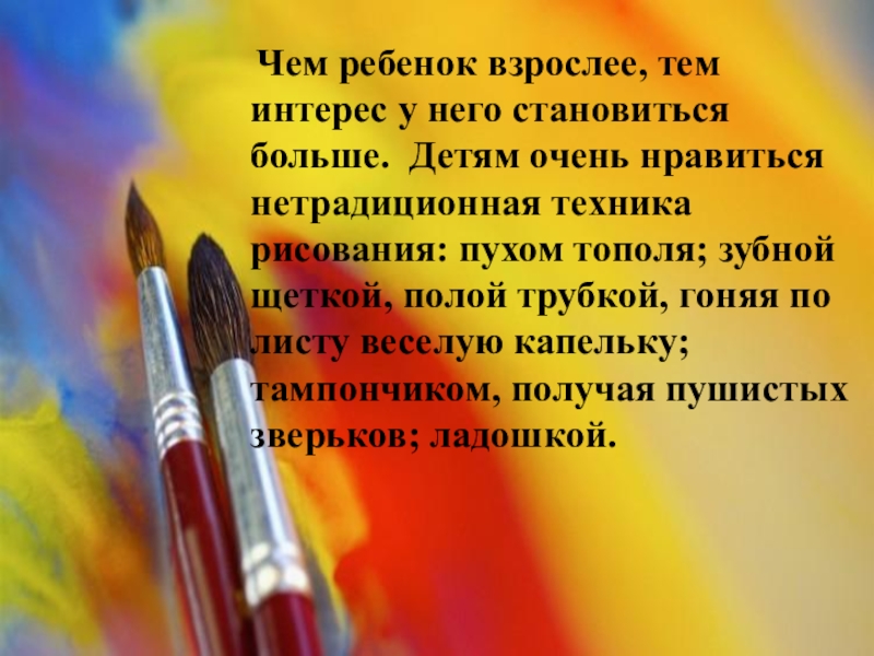 повышайте свой профессиональный уровень и мастерство через ознакомление, и овладение новыми нетрадиционными способами и приемами изображения.