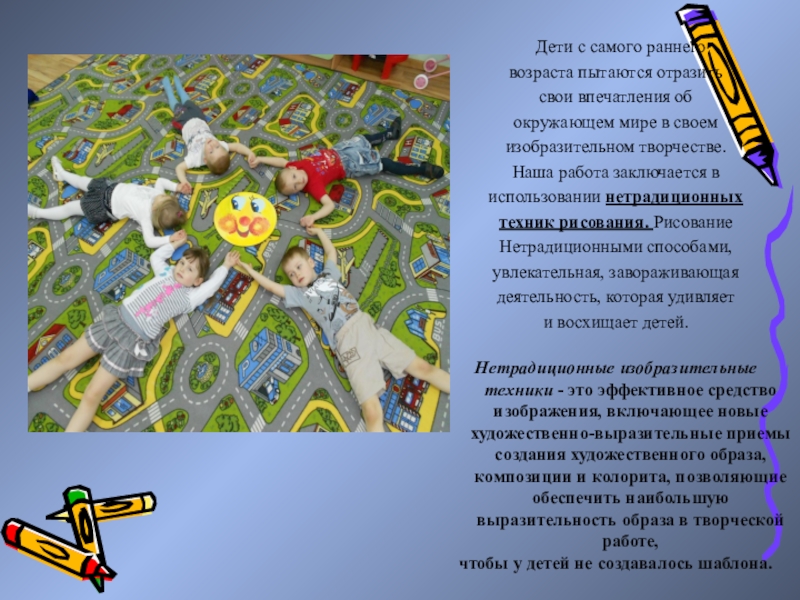 используйте разные формы художественной деятельности: коллективное творчество, самостоятельную и игровую деятельность детей по освоению нетрадиционных техник изображения;