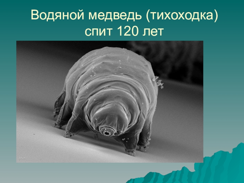 Слайд 8Водяной медведь (тихоходка) спит 120 лет