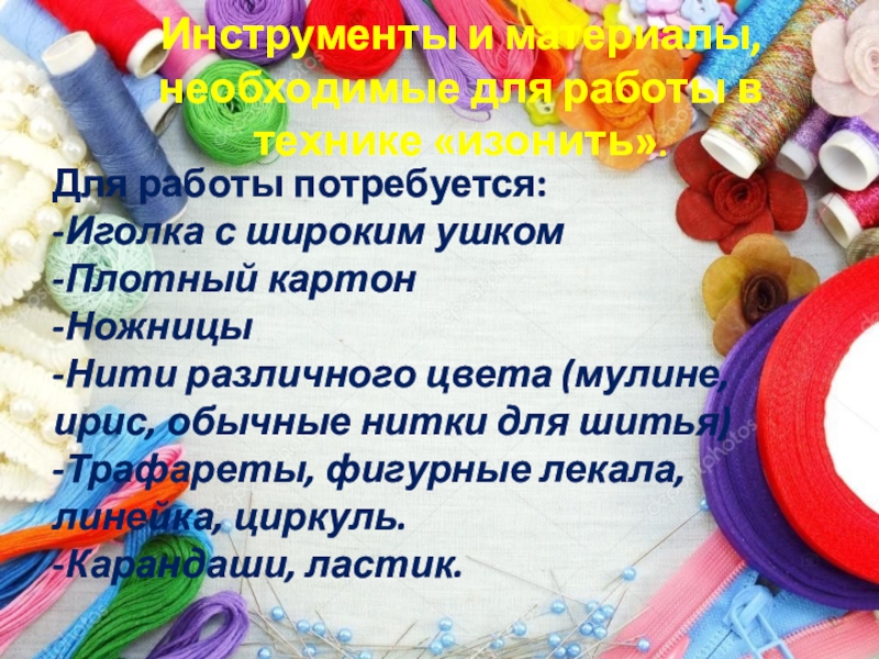 Инструменты и материалы, необходимые для работы в технике «изонить».