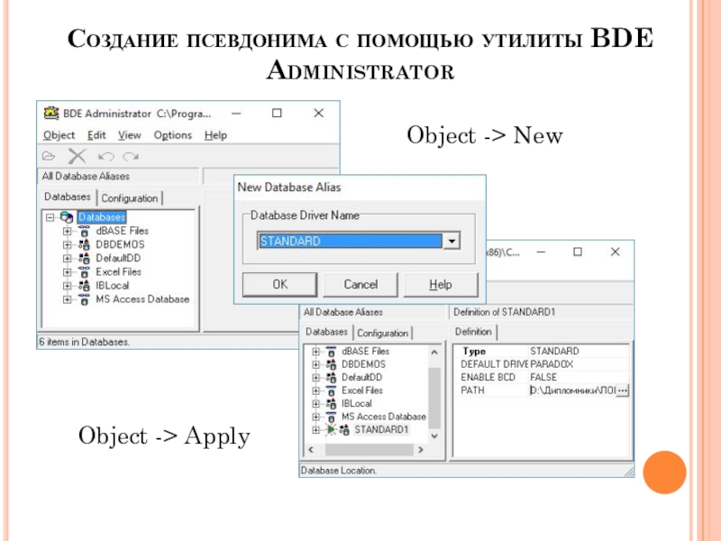 Слайд 7Создание псевдонима с помощью утилиты BDE Administrator
