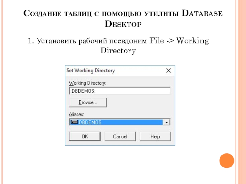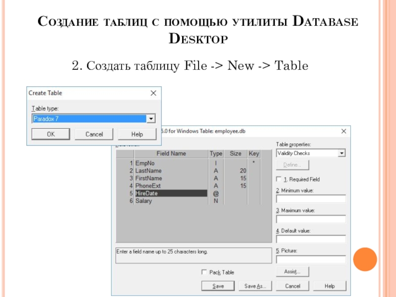 Слайд 9Создание таблиц с помощью утилиты Database Desktop